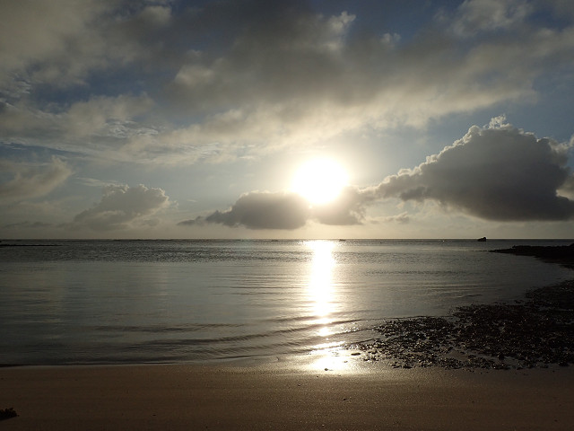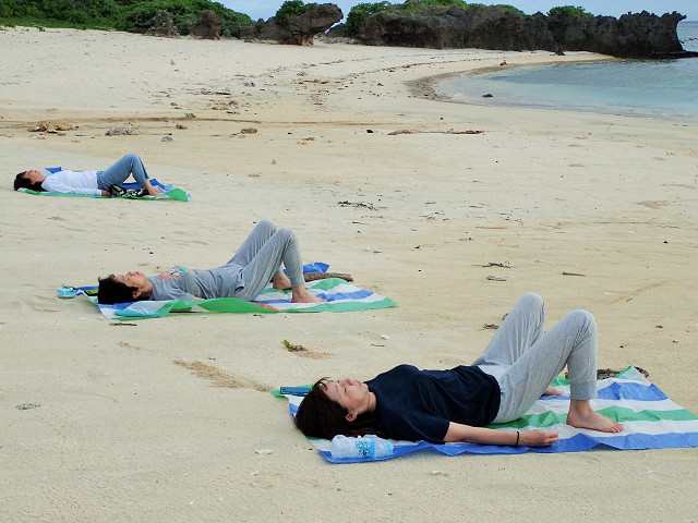 早朝のビーチ。フェルデンクライスで身体をほぐします