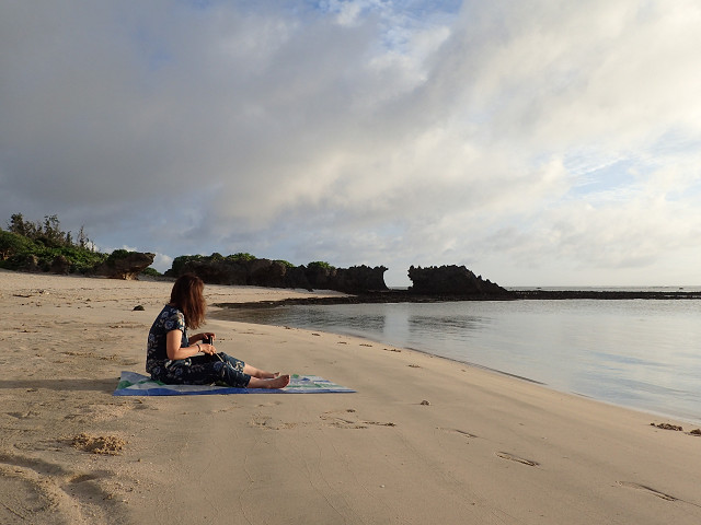 早朝の海で瞑想タイム。イソヒヨドリの声が聴こえます