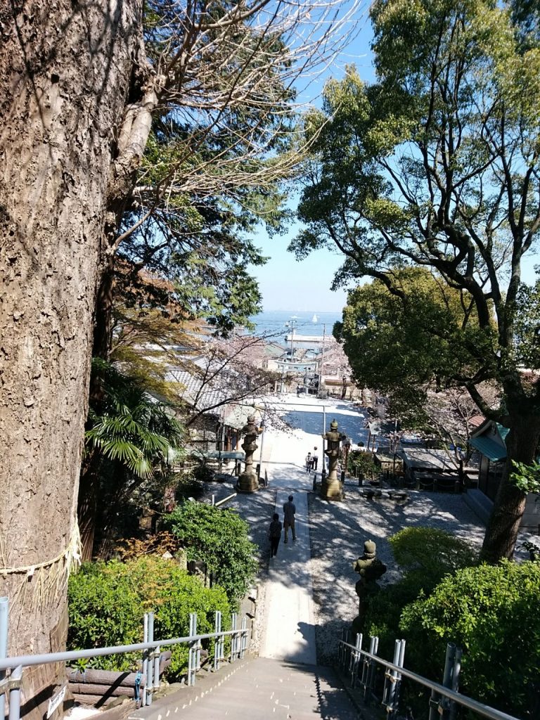 走水神社の境内から海を見下ろす