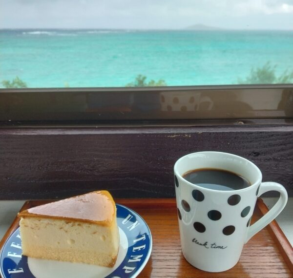 珈琲とチーズケーキを注文して海の見えるテラスにすわると、眼下にエメラルドグリーンの海が広がっていた。
